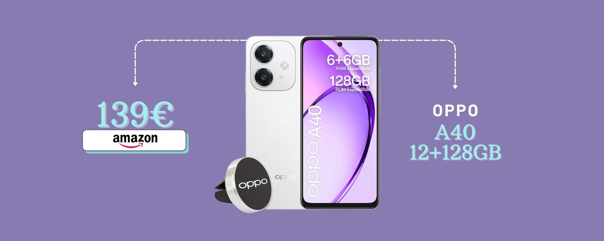 ![OPPO A40 Smartphone, Fotocamera AI 50MP, Selfie 5MP, Display 6.67” 90HZ LCD HD+, 5100mAh, RAM 12 (6+6) +ROM 128GB (esp1TB), IP54, Supporto Auto [Versione Italia], Starlight White](https://m.media-amazon.com/images/I/41kcecKY-9L._SL500_.jpg)