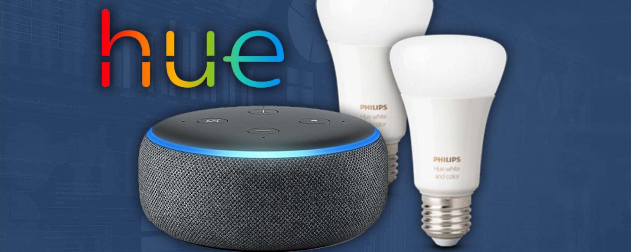 Lo sconto di oggi dimezza il prezzo di vendita del bundle, un kit ideale per chi intende avvicinarsi per la prima volta al mondo smart home. Amazon Echo e il sistema di illuminazione HUE offrono un’installazione intuitiva e veloce.
