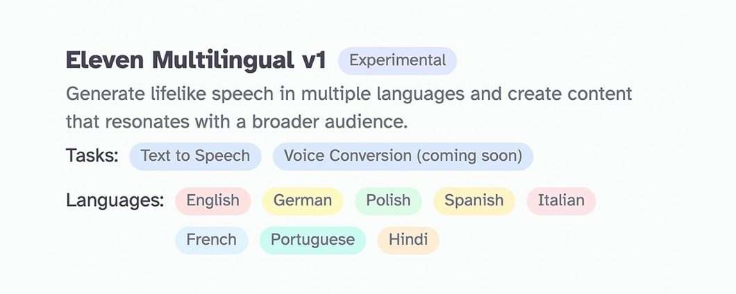 Proprio in queste ore è arrivato l’annuncio del lancio di Eleven Multilingual v1, modello inedito che supporta la sintesi vocale in francese, tedesco, hindi, italiano, polacco, portoghese e spagnolo, oltre ovviamente all’inglese. Come il predecessore, si rivela un eccellente strumento di narrazione, capace di adattare qualsiasi testo a contesti differenti, e di trasmettere intenti ed emozioni in modo iperrealistico.