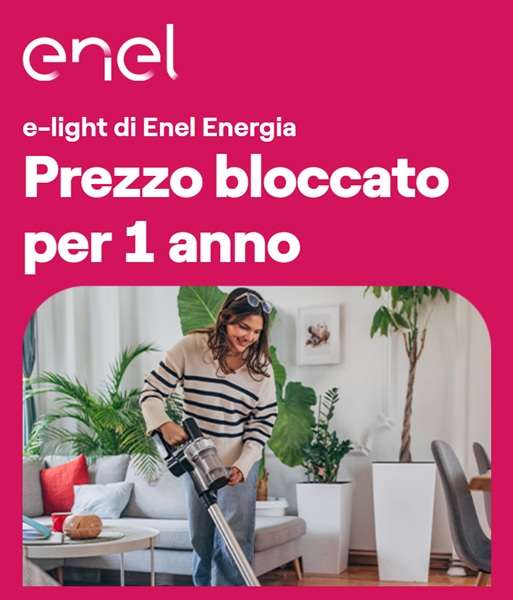 Enel Energia propone il prezzo della componente energia bloccato per un anno a chi aderisce alle offerte E-Light Luce e/o E-Light Gas. Inoltre, aderendo entro il 18 novembre all’offerta E-Light Gas, si ottiene uno sconto di 50 euro sul corrispettivo di commercializzazione e vendita per i primi 12 mesi.