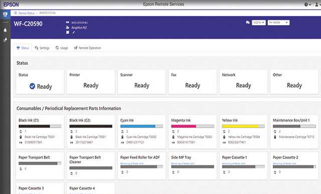 ERS si occupa della diagnostica e della risoluzione dei problemi anche senza avere accesso fisico alla stampante, abbattendo di conseguenza i costi operativi e minimizzando i tempo di fermo. È realizzato per consentire solo ai tecnici autorizzati di visualizzare i messaggi di errore per stabilire l’intervento di assistenza più adeguato, se necessario inviando il personale in loco con tutto ciò di cui c’è bisogno senza costringere a una successiva seconda uscita. Questo il commento di Luca Motta, Channel Sales Manager di Epson Italia.