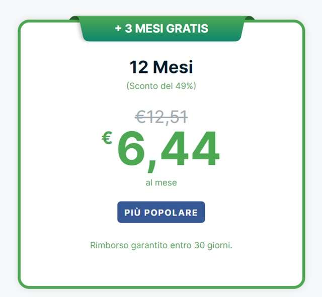 Se stai per partire per una breve vacanza in occasione del ponte del primo maggio e hai deciso di affidarti a una VPN per proteggere i tuoi dati personali quando navighi online, ti segnaliamo l’ultima offerta di ExpressVPN, uno dei migliori servizi disponibili in Italia e all’estero: il piano di un anno è in sconto del 49%, con il prezzo sceso da 12,51 euro a 6,44 euro al mese, a cui si aggiungono tre mesi extra gratuiti. E qualora il servizio non dovesse soddisfare le tue aspettative, puoi richiedere il rimborso completo entro 30 giorni dall’acquisto.