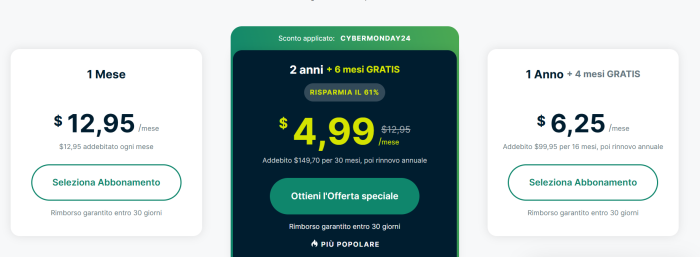 Per approfittare di questa promozione e migliorare la tua sicurezza online, visita il sito ufficiale di ExpressVPN e sottoscrivi l’abbonamento biennale.