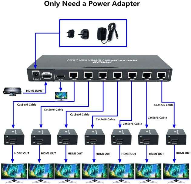 Attenzione, però: se l’ambizione è semplicemente quella di duplicare il segnale su 2-3 tv, la soluzione potrebbe costare molto di meno. Ecco come fare sfruttando normali extender HDMI.