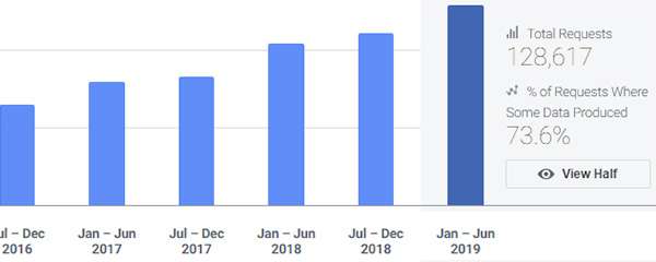 Sono 128.617 le richieste inoltrate dai governi di tutto il mondo e ricevute da Facebook nei primi sei mesi del 2019 per l’ottenimento di informazioni riguardanti i suoi iscritti. +16% rispetto a quanto registrato nella seconda metà del 2018, mai così tante da quando nel 2013 è stata diffusa la prima edizione del report. È quanto emerge dal nuovo rapporto sulla trasparenza pubblicato dal social network.