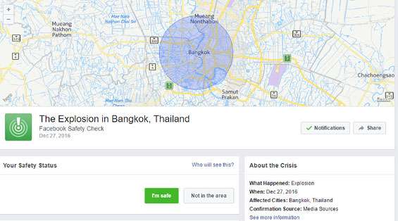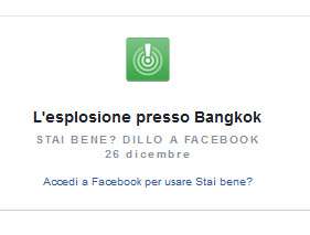 Nessuna esplosione a Bangkok, salvo quella di una manciata di petardi, indirizzati ad un palazzo del governo da un manifestante solitario, nessun rischio per i cittadini. Eppure, il 26 dicembre Facebook ha innescato in Thailandia il suo Safety Check, soluzione per rintracciare conoscenti e notificare la propria sicurezza in momenti di crisi come catastrofi naturali o eventi antropici che creino situazioni di pericolo.