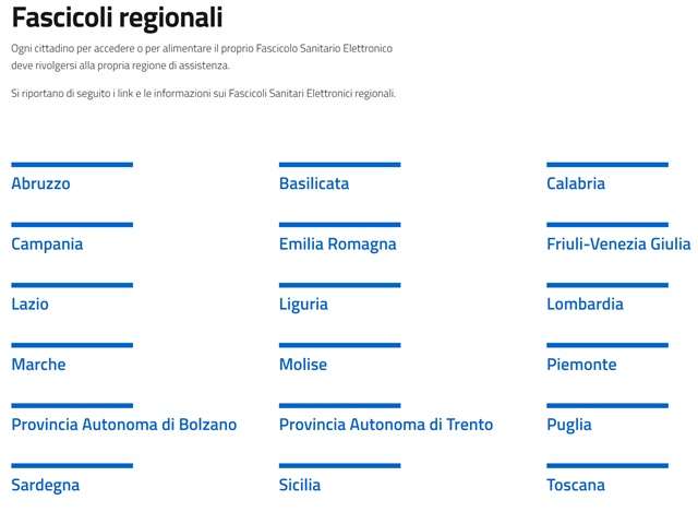 La pagina di login al proprio FSE è raggiungibile tramite la la sezione “Fascicoli Regionali” del portale ufficiale del governo, disponibile all’indirizzo fascicolosanitario.gov.it. Una volta che ci si è collegati, è sufficiente selezionare la voce del menu “Fascicoli Regionali” e la regione dove si risiede.