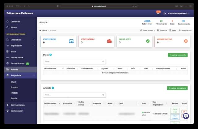 È possibile conservare un numero illimitato di fatture. In realtà c’è il vincolo dello spazio di archiviazione (1 GB), quindi l’azienda italiana stima un massimo di circa 100.000 fatture. L’utente può inoltre compilare online le fatture nella sezione dedicata della piattaforma. Il servizio consente la gestione delle fatture attive (inviate) e passive (ricevute). Ovviamente sono in formato XML, l’unico accettato dal Sistema di Interscambio (SdI).