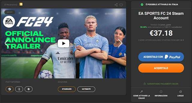 Scegliendo di effettuare l’acquisto su Kinguin a soli 37,18 euro di EA SPORTS FC 24 sarà possibile accedere al titolo dalla piattaforma Steam a partire dal day one fissato in venerdì 29 settembre. Dopodiché, lo si potrà scaricare, installare e giocare sul proprio PC senza alcuna limitazione.