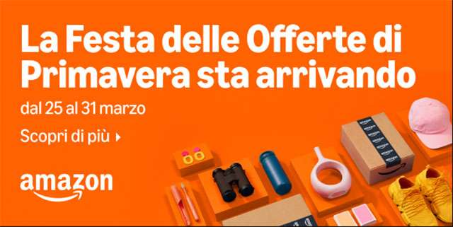 Amazon ha confermato il ritorno dell’evento dedicato alla bella stagione che vedrà protagonista l’e-commerce: la Festa delle Offerte di Primavera. Le date ufficiali sono quelle relative alla settimana dal 25 al 31 marzo. È già online anche la pagina ufficiale dell’appuntamento.