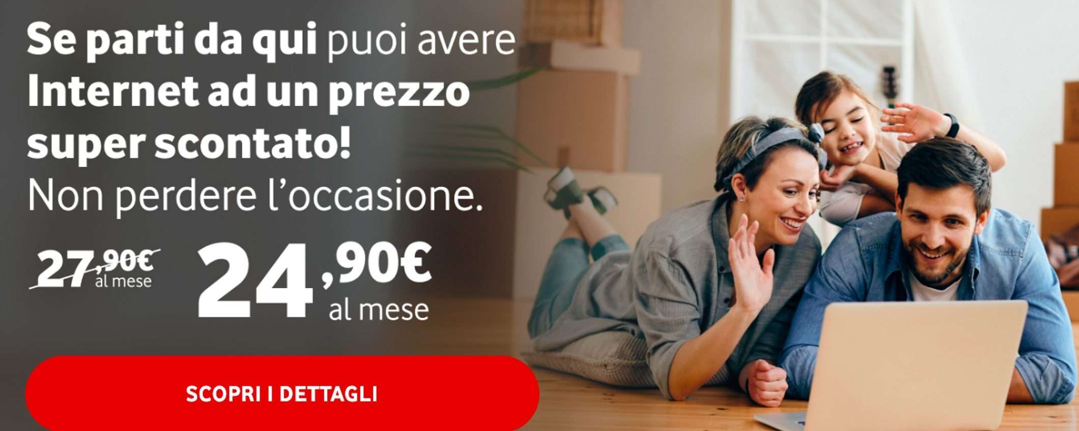 La tariffa di queste ore offre internet senza limiti ADSL, FTTC e FTTH con velocità massima che può raggiungere picchi di 2,5 Gigabit al secondo in download e 300 Mbps in upload solo in FTTH, Modem incluso nel canone mensile in comodato d’uso completamente gratuito con Wi-Fi 6 e Wi-Fi Optimizer. Tutto questo per appena 24,90 euro al mese. Questo prezzo, invece, per i clienti che hanno già attiva una o più SIM con l’operatore rosso è a disposizione un prezzo di favore. Stiamo parlando di 22,90 euro mensili.