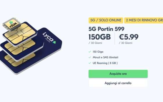 Portin 599: 150 GB, minuti e SMS illimitati, 8 GB in UE – 5,99 € ogni 30 giorni