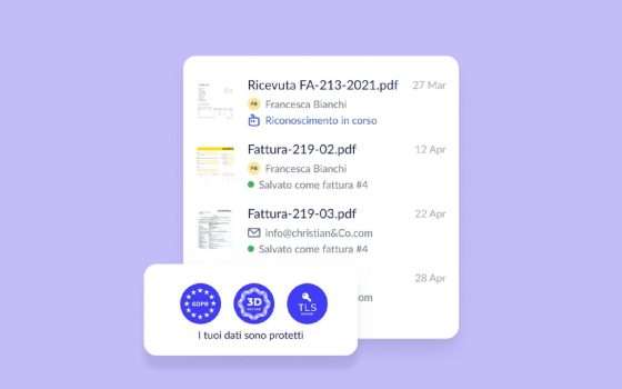 Per semplificare la contabilità, la piattaforma consente di abbinare facilmente le fatture emesse con i pagamenti in entrata e di esportare in massa tutti i dati di transazioni e documenti in un click.