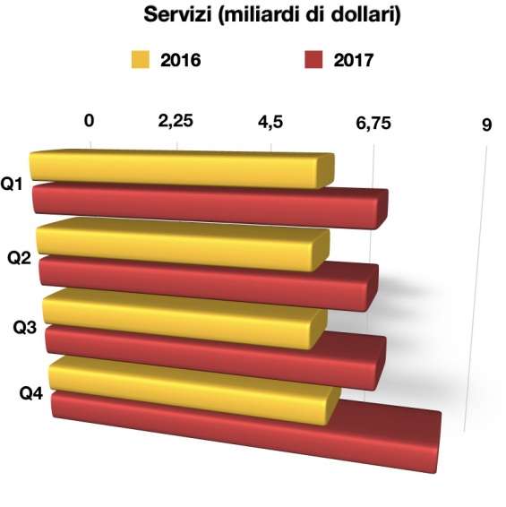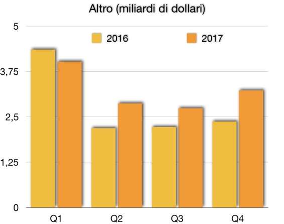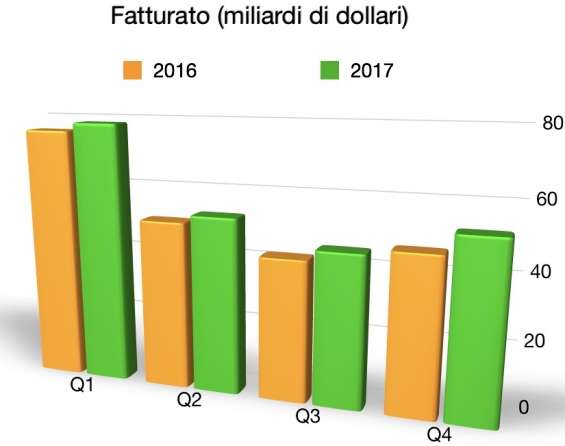 Analizzare il 2017 di Apple può essere apparentemente semplice visto che, se andiamo ad esaminare banalmente il fatturato, scopriamo che si è tratta di un anno di crescita continua , per la precisione un anno in cui la crescita è stata sempre maggiore; l’anno si è infatti aperto con un incremento di poco più del 3 percento nel primo trimestre fiscale (che nel caso di Apple, ricordiamo che coincide col lo scorso trimestre natalizio) per concludersi con un incremento di oltre il 12 percento nei risultati dell’ultimo trimestre, un risultato contro ogni previsione perché ancora esente dagli effetti di iPhone X .