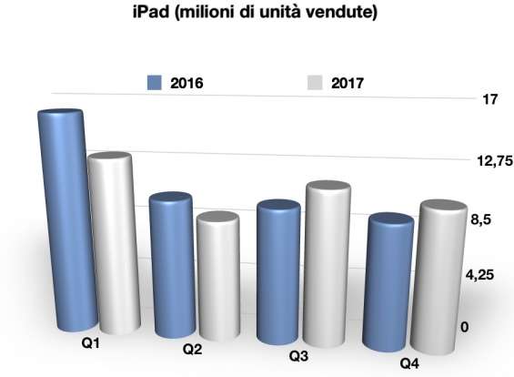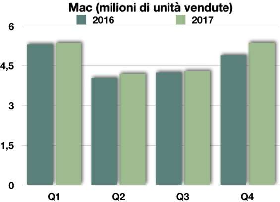 È ancora presto per dire se si tratta di un nuovo ciclo di risalita, ma se a questo aggiungiamo il nuovo iPad Pro presentato durante il keynote di apertura della WWDC 2017, possiamo dire che Apple ha dato il via a una nuova serie di prodotti che potrebbero sostenere le vendite anche nel 2018. Non resta che attendere i dati del trimestre Natalizio, ma per il futuro rimane ancora qualche dubbio sulla linea che vorrà tenere Apple, in particolare sull’iPad mini (prodotto interessante sotto molti punti di vista, ma che non vede aggiornamenti sostanziali da molto tempo). Per chiudere il cerchio, e introdurre il prossimo argomento, ricordiamo comunque che le vendite di iPad sono circa il doppio di quelle dei Mac, anche se portano ad una fetta minore di fatturato (ma a numeri maggiori sull’App Store): per vie diverse, entrambi i settori continuano ad avere una grande importanza per Apple.