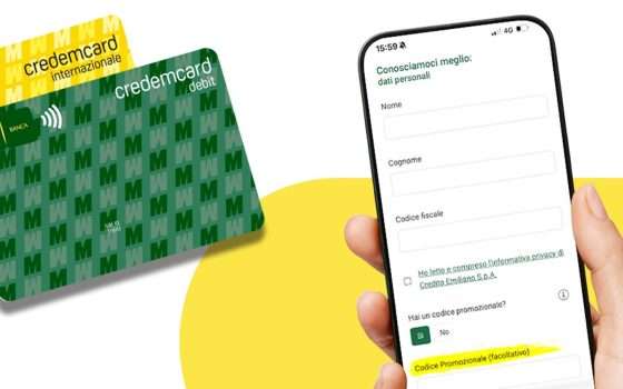 Vuoi usufruire dei vantaggi offerti da Credem? Questa può essere l’occasione migliore per poter gestire al meglio il tuo denaro. Se apri il conto corrente Credem Linkentro il 30 aprile e inserisci il codice promozionale CREDEM100 nel campo dedicato che troverai in fase di apertura del conto c’è una sorpresa per te. Quello che devi fare è scegliere la carta che preferisci tra Credemcard e Carta di debito Internazionale Mastercard: se dall’1 maggio al 31 agosto spendi con la carta almeno 200 euro al mese puoi ricevere un Buono Regalo Amazon.it da 25 euro (fino a 100 euro). Non perdere altro tempo!
