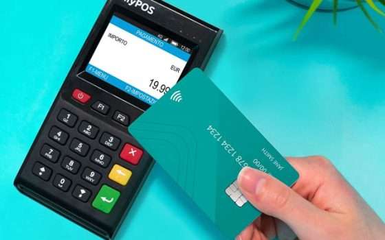 - myPOS Carbon: dal design robusto e resistente, è presente anche in questo terminale il registratore di cassa basato sul cloud e la connettività Wi-Fi, Bluetooth e 3G/4G grazie alla SIM dati gratuita. Costa 219 euro.