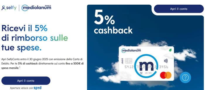 L’iniziativa è valida per chi apre un nuovo conto entro il 30 giugno 2025. Il rimborso avviene direttamente sul conto corrente e resta attivo fino al 31 luglio 2025. Per approfittare di questa straordinaria promozione basta andare sulsito di SelfyConto. Nelle prossime righe ti diamo maggiori info al riguardo.