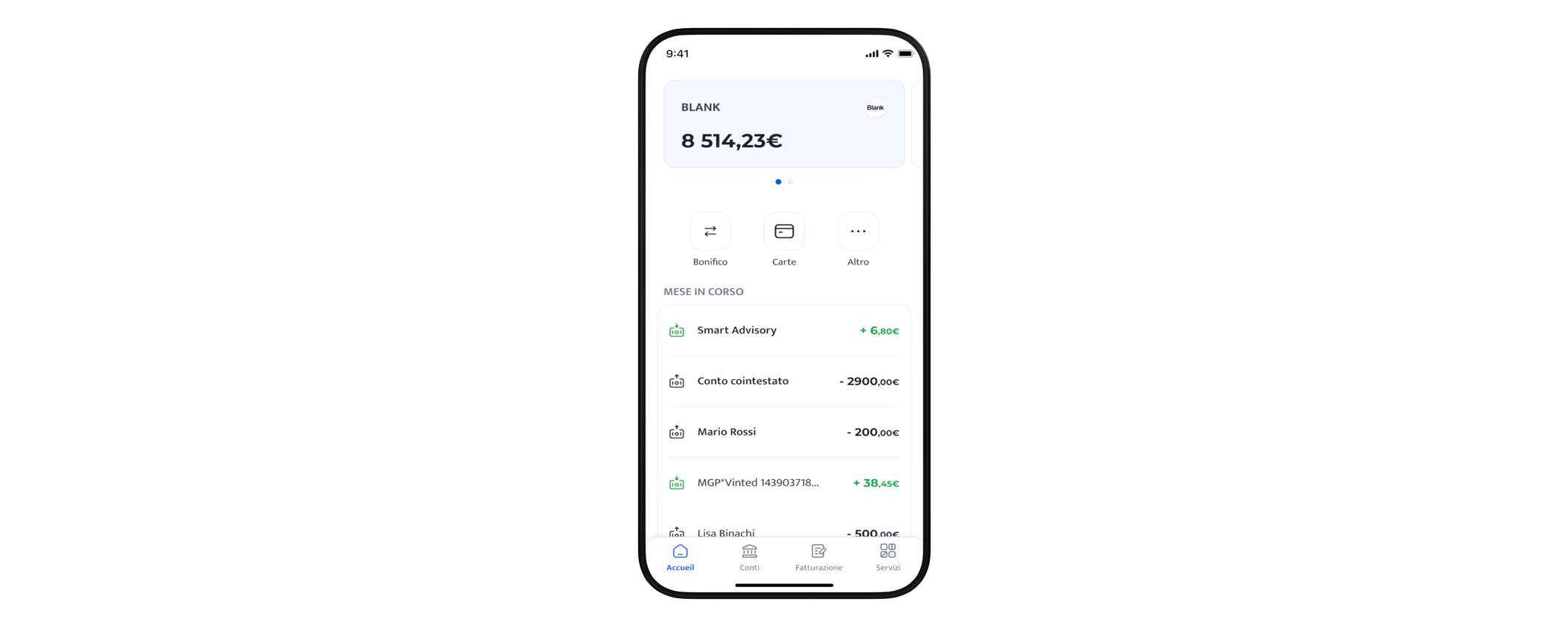 Blank è una soluzione con un conto corrente aziendale completo di funzionalità specifiche pe la gestione delle fatture, dell’emissione di bonifici e di altre operazioni, pensato specificatamente per i professionisti e le micro imprese. Puoi provarlo gratuitamente per un periodo di 3 mesi senza alcun vincolo, saggiandone le funzionalità. Ecco cosa offre.