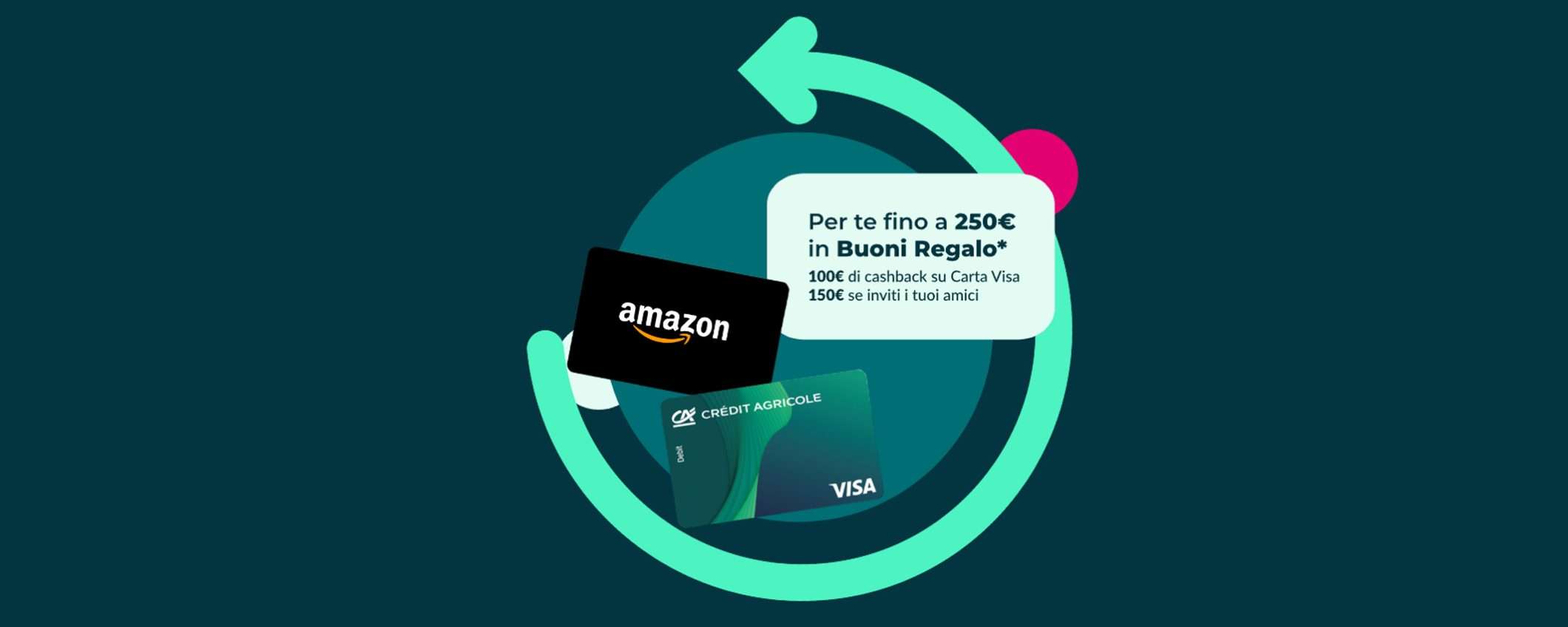 Ma come ottenere i tanto attesi Buoni Amazon? Ci sono tre opzioni. Per chi sceglie di aprire il conto e sottoscrivere una carta di debito Crédit Agricole Visa, c’è la possibilità di ottenere fino a 100 euro in Buoni Regalo seguendo questi passaggi: