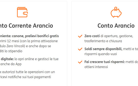 - Servizi digitali: Conto Arancio è gestibile interamente online, tramite app e home banking.