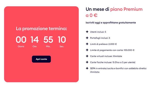 A tutto questo si aggiungono poi le carte fisiche e virtuali gratuite, con limite di prelievo agli sportelli ATM fissato a 5.000 euro. Le carte di debito Visa sono senza commissioni, nonché compatibili con i principali wallet digitali, tra cui Apple Pay e Google Pay.