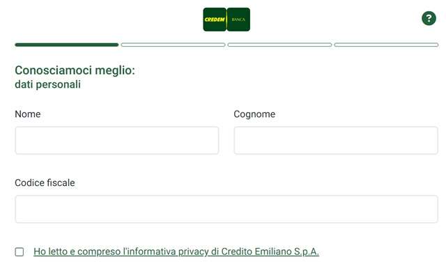 Per aprire il conto online per giovani Credem Link sono sufficienti un documento d’identità (o SPID), una connessione Internet stabile e una stanza illuminata per completare con successo il riconoscimento tramite video selfie. Puoi richiedere l’apertura di Credem Link direttamente su questa pagina del sito ufficiale.