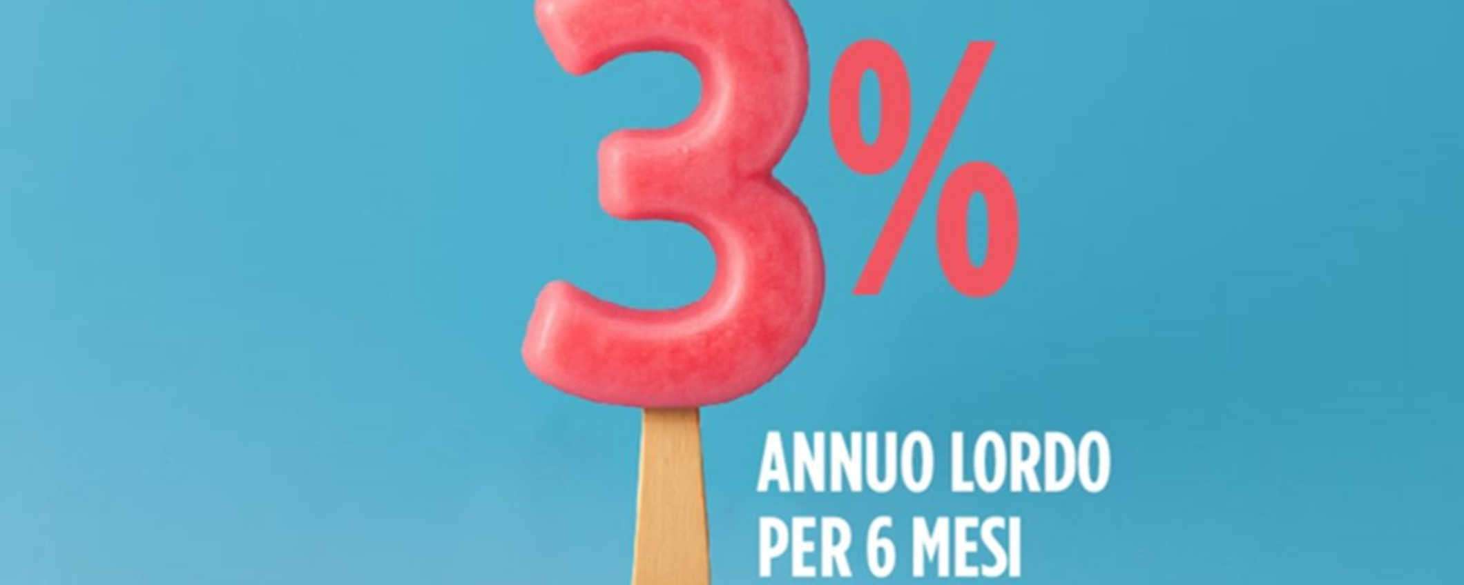 Fino al 31 luglio, Crédit Agricole lancia una promozione riservata a chi apre un nuovo conto online: sottoscrivendo anche il conto deposito a costo zero, si ottiene un rendimento annuo lordo del 3% sulle somme vincolate per sei mesi.