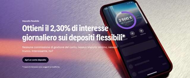 Se si vuole ottenere un rendimento migliore sui propri risparmi, si potrebbe prendere in considerazione il conto deposito flessibile di Klarna, grazie al quale si ottiene il 2,30% di interesse giornaliero. La soluzione finanziaria della fintech svedese non prevede alcuna commissione di gestione del conto né un importo minimo per l’apertura.