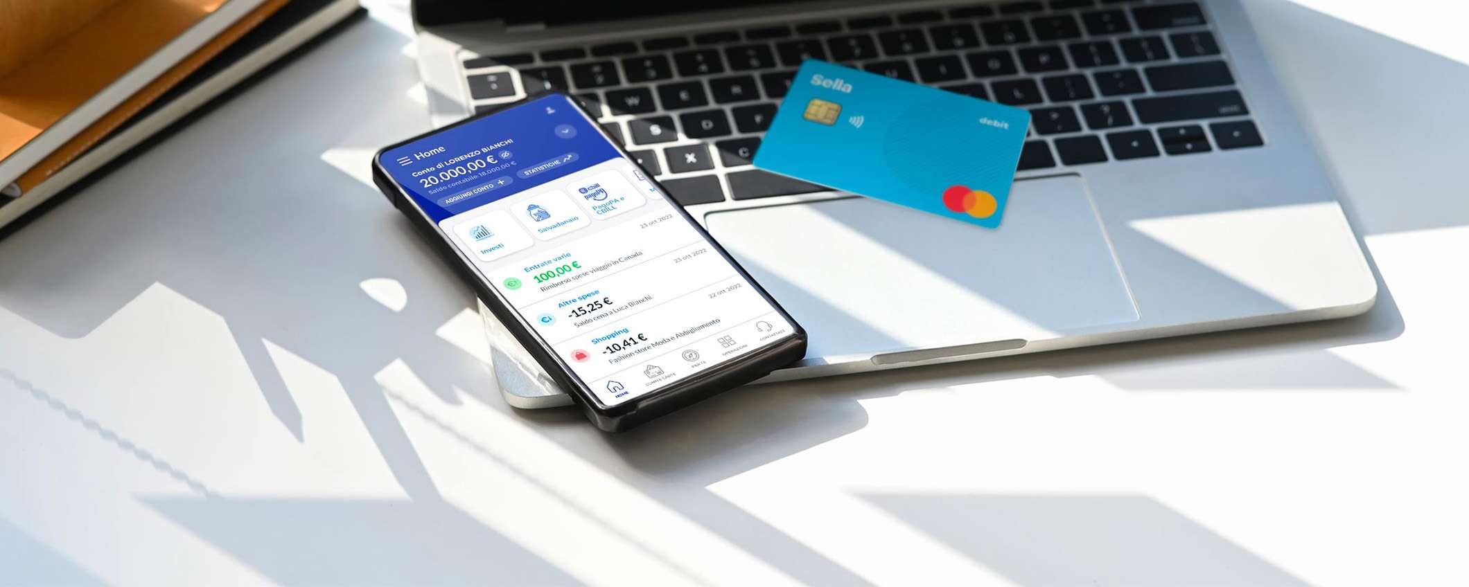 L’app del conto Sella Start permette di gestire facilmente tutto. Riceverete delle notifiche in tempo reale su saldo e movimenti effettuati con conto e carta. I conti di altre banche sono comodamente controllabili attraverso la sezione dedicata e avete accesso a tutte le funzionalità aggiuntive, tra cui soluzioni bancarie, investimenti e tanto altro. Si tratta di una soluzione molto interessante, dunque, per chi non sa quale banca scegliere.