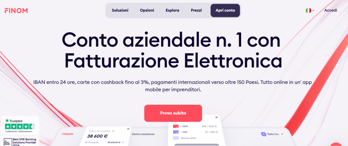 Se sei alla ricerca di un conto aziendale che unisca velocità, convenienza e sicurezza, Finom è la soluzione ideale. Grazie alla sua piattaforma innovativa, puoi ottenere un IBAN italiano in appena 24 ore, cosa che ti permetterà di gestire subito le tue finanze aziendali senza lunghe attese burocratiche. Inoltre, con Finom hai accesso a un cashback fino al 3% su tutte le spese, un vantaggio unico per ottimizzare i tuoi costi aziendali.