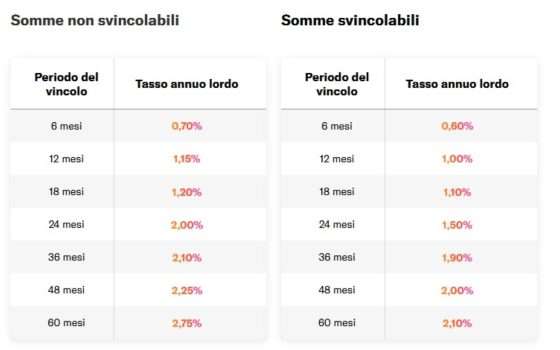 Le linee di deposito – vincolabili e svincolabili – offrono un interesse lordo che raggiunge il 2,75%.