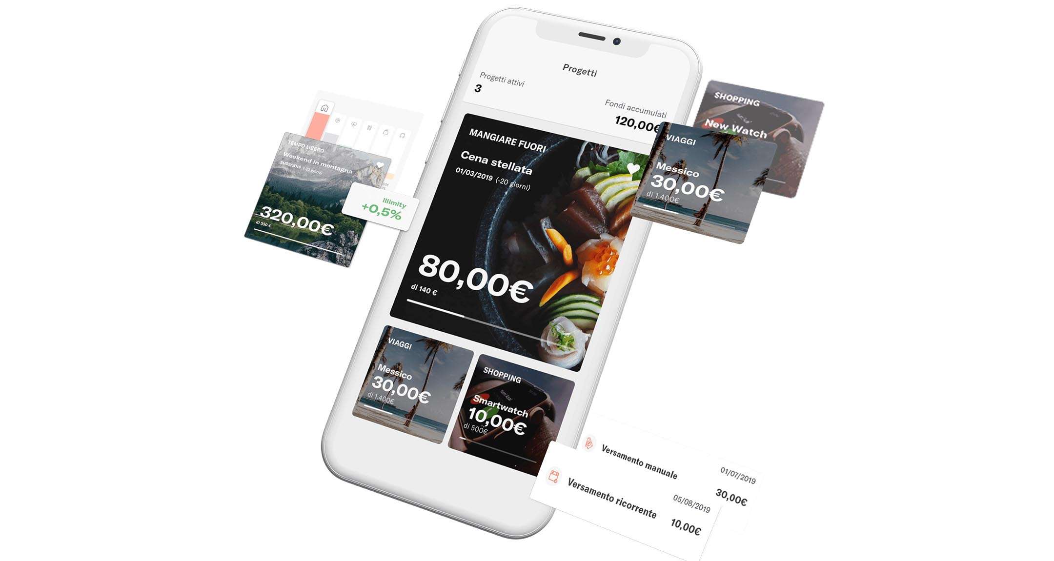 Il conto include inoltre una carta di debito internazionale e permette di sottoscrivere assicurazioni, richiedere prestiti o creare piani di accumulo per rispramiare grazie a Progetti di Spesa gratuiti con un rendimento dello 0,50% senza vincoli.