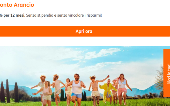 ING, uno dei servizi di banking più rinomati sul mercato, propone un tasso di interesse del 4% lordo per i primi 12 mesi di attivazione su Conto Arancio (fino a un massimo di 100,000 euro). Se l’offerta ti stuzzica, ti basta aprire un Conto Corrente Arancio o Conto Arancio fino al 24 Maggio 2025, e attivare entrambi i conti con un primo bonifico (anche minimo) entro il 30 Giugno.