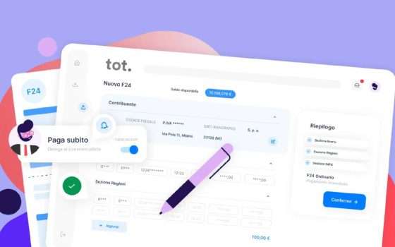 Inoltre, con il conto aziendale Tot puoi pagare i tuoi F24 direttamente online e gestire con facilità il pagamento di imposte, tasse e contributi della tua attività.