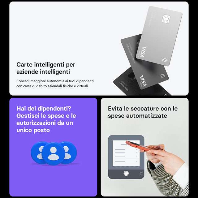 L’approccio smart è testimoniato dalla presenza di strumenti come Statistiche e Spese, per avere tutto sotto controllo, in ogni momento, anche attraverso un’applicazione mobile. Chi ha dipendenti, può mettere a loro disposizione carte di debito fisiche oppure virtuali, gestendone le autorizzazioni e i limiti di utilizzo attraverso un’interfaccia accessibile e intuitiva. Inoltre, la fatturazione intelligente e la piena integrazione garantita con i software di contabilità Xero e Quickbooks permettono all’amministrazione di risparmiare tempo.
