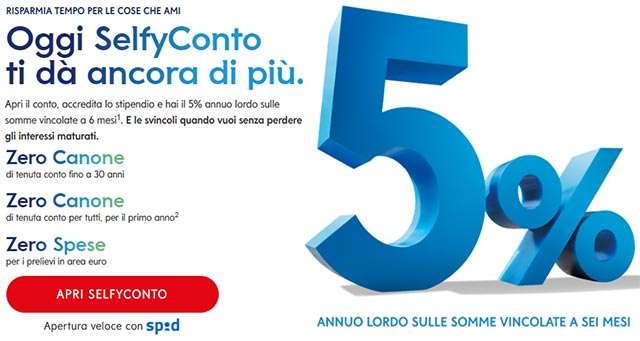 Apri SelfyConto: 5% annuo lordo e tanti vantaggi