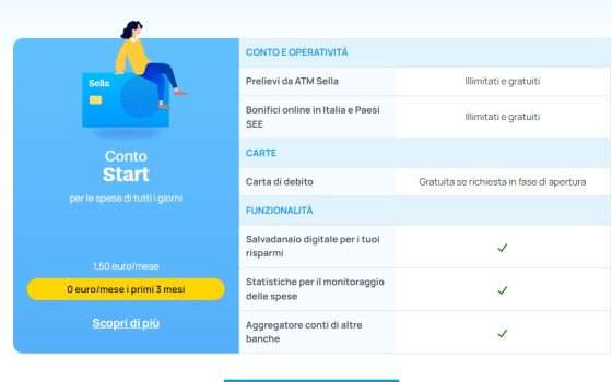 Per aprire conto Sella Start e ottenere 3 mesi di canone gratuito clicca qui.