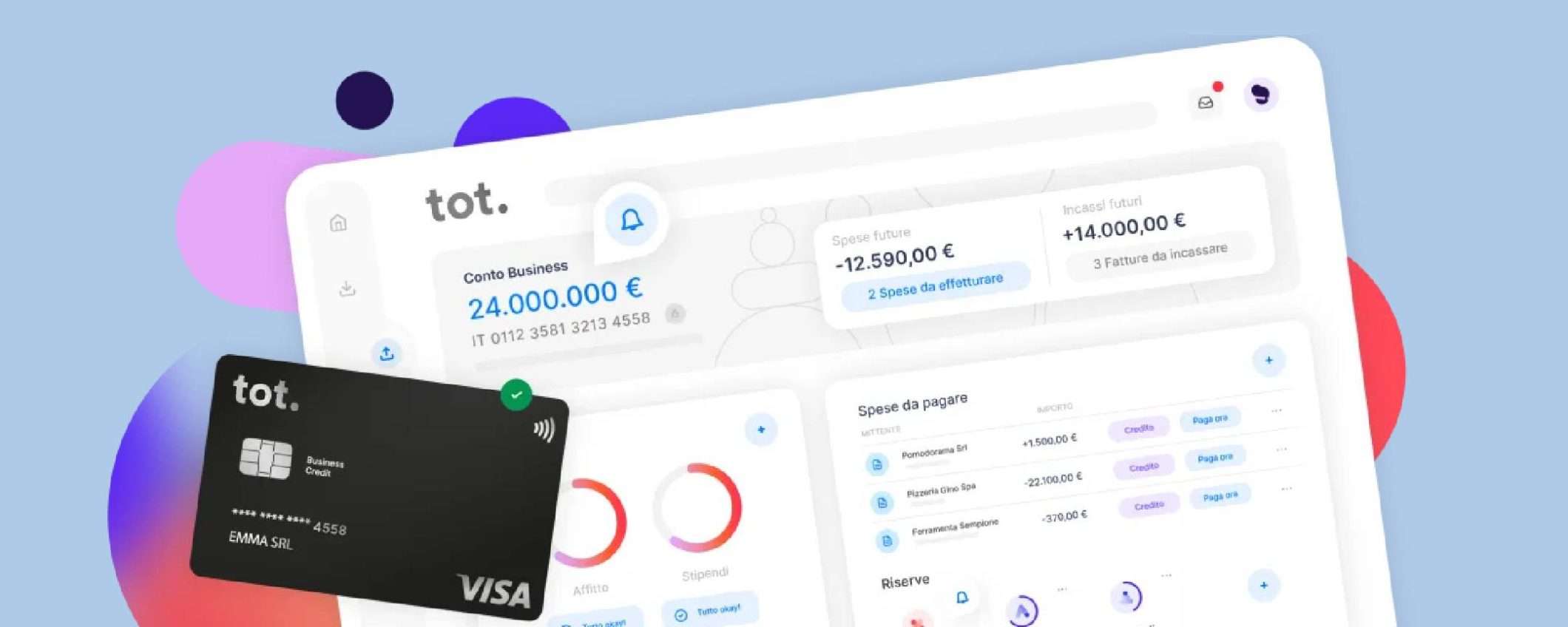 Tot è un conto 100% digitale creato su misura per aziende e liberi professionisti. Con una vasta gamma di servizi e un unico canone, Tot offre tutto il necessario per semplificare le operazioni finanziarie, risparmiare tempo e migliorare la gestione delle finanze.