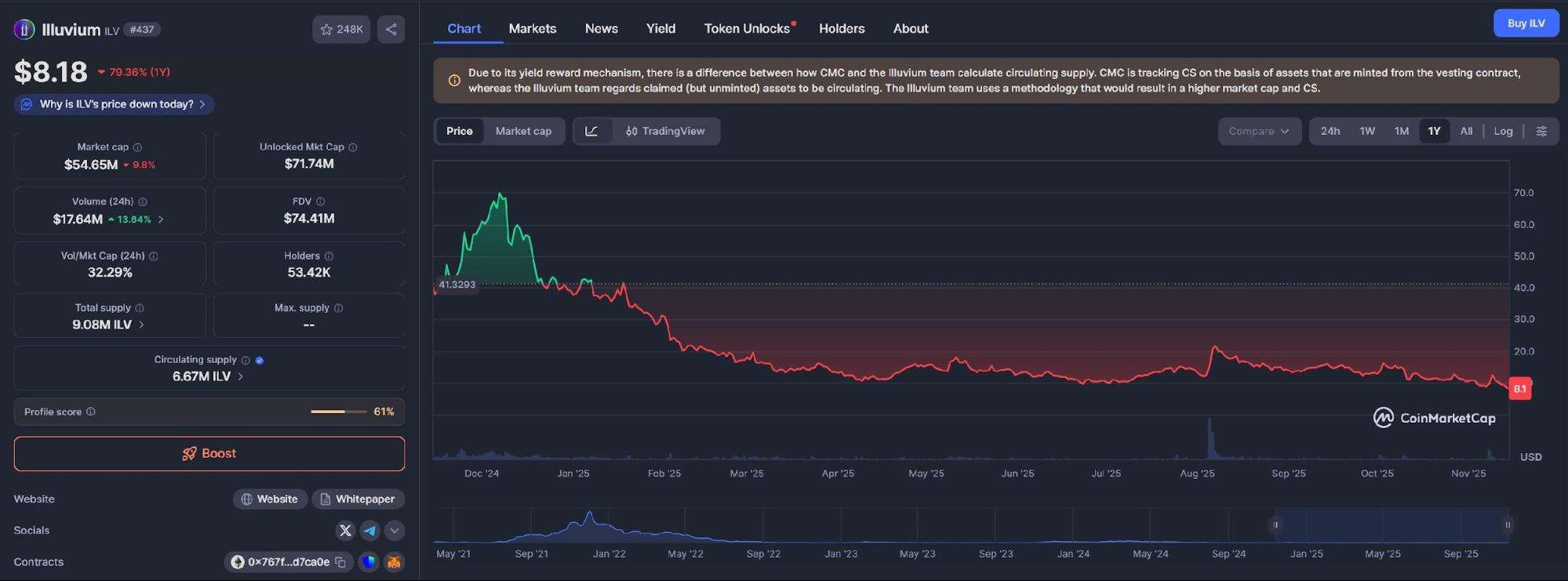 Low runway, high burn rate, and selling $ILV to cover expenses 💀 pic.twitter.com/HhGHKjLYk0— Cryptocondom Intern | Dubai Arc 🇦🇪 (@intern_cc) November 13, 2025