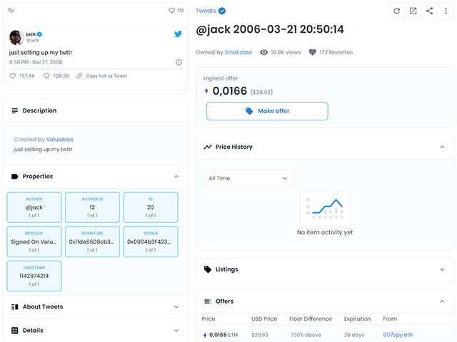 Il primo tweet in formato NFT vale 100.000 volte meno