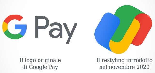 L’icona originale (logo) di Google Pay a sinistra e il restyling “Wallet” introdotto a novembre 2020 a destra