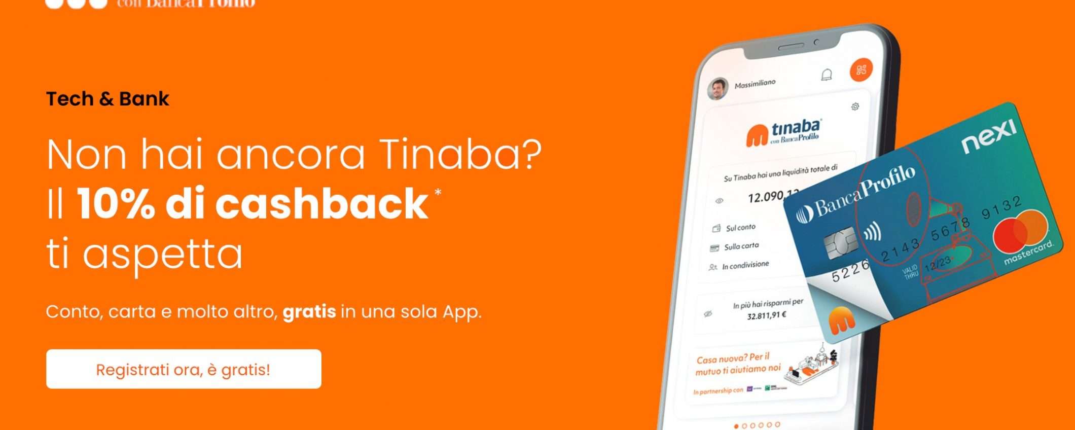 Tinaba: il conto corrente GRATIS con 10% di cashback sui tuoi acquisti!