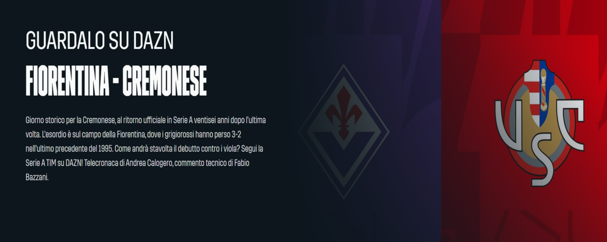 Il match Fiorentina-Cremonese può essere visto in diretta streaming su DAZN, seguendo tutto il pre-partita all’interno dello stadio, che sarà colorato sicuramente di viola.