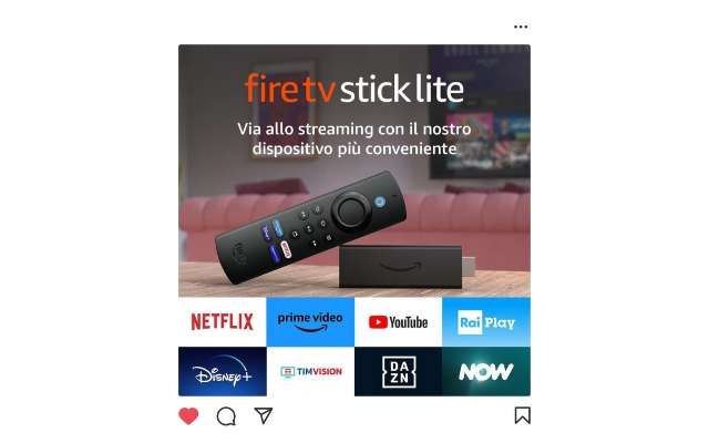 Aggiorna il tuo televisore alla nuova tecnologia! Scegli Fire TV Stick Lite, oggi al 29% di sconto su Amazon. Questa speciale offerta ti permette di avere con un unico dispositivo, a meno di 30 euro, tutte le tue piattaforme preferite di streaming live e on demand. Gustati tutti i contenuti che ami in qualità HD e senza alcun limite grazie a questo apparecchio poco più grande di una comunissima pen drive. Collegalo alla televisione tramite il pratico connettore HDMI.