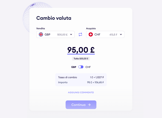 Supporta più di 20 valute diverse per operare in più di 70 Paesi in tutto il mondo, con commissioni trasparenti e sempre visualizzabili prima di ogni operazione.