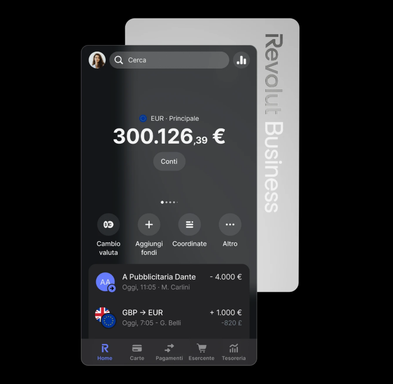 | Revolut Business | 25+ valute | 5€ oltre soglia mensile + 0,6%-1% su cambi fuori orario | Fino a 5 giorni lavorativi |
