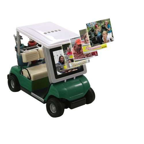 Forse non sarà proprio la golf car usata da Tiger Wood per spostarsi lungo i campi da gioco, però questo cart da scrivania permette a chiunque di avere sotto i propri occhi, anche durante l’attività lavorativa, le fotografie digitali dei momenti più belli della propria vita.