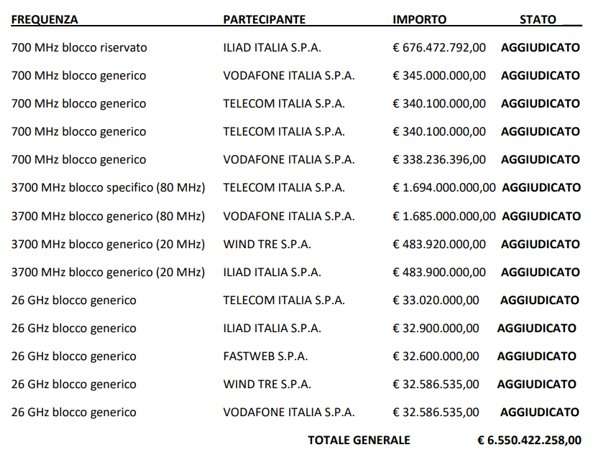 Tre lotti per Iliad, quattro per Vodafone, quattro per Telecom Italia, due per Wind, uno per Fastweb: l’era del 5G in Italia può partire da questi nomi e da queste cifre.