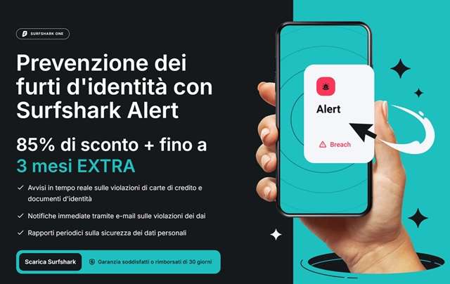 I data breach segnalati negli ultimi giorni ripropongono il tema sempre attuale di come proteggersi dai furti d’identità e dalle possibili violazioni delle carte di credito. Uno degli strumenti migliori oggi disponibili sul mercato è Surfshark Alert, prodotto incluso nel pacchetto di cybersecurity Surfshark One accanto a un antivirus e a una VPN Premium.